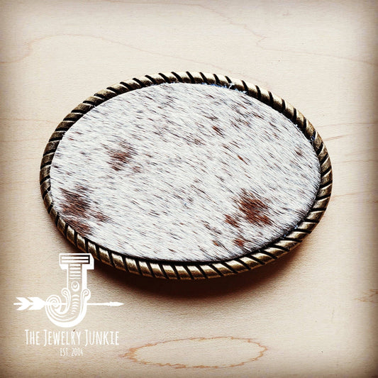Rope Edge Spotted Hair on Hide Leather Belt Buckle