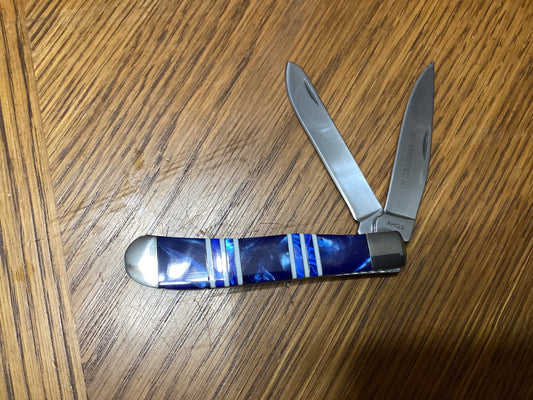 Twisted X Trapper Knife Blue with White Stripes