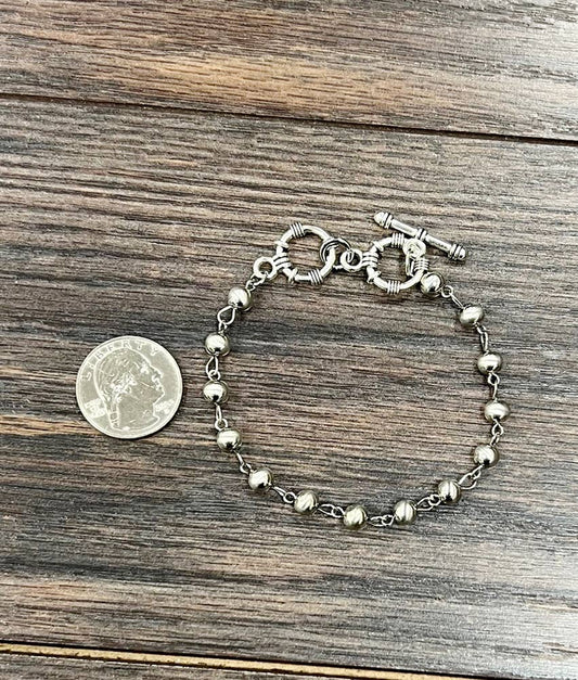 Handmade Silver Navajo Bead Adjustable Bracelet