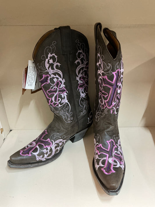 Justin Cross Pink and Brown Pointed Toe-CLEARANCE