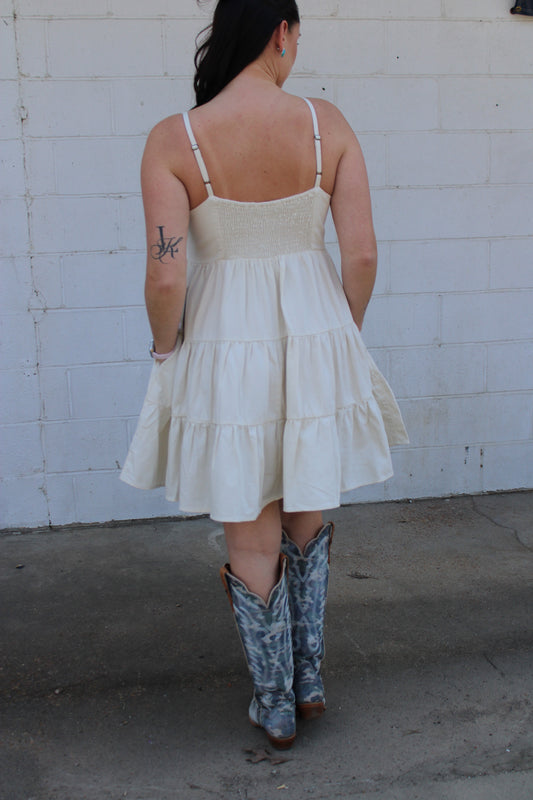 Western Position Printed Pearl Snap Dress With Waist Tie