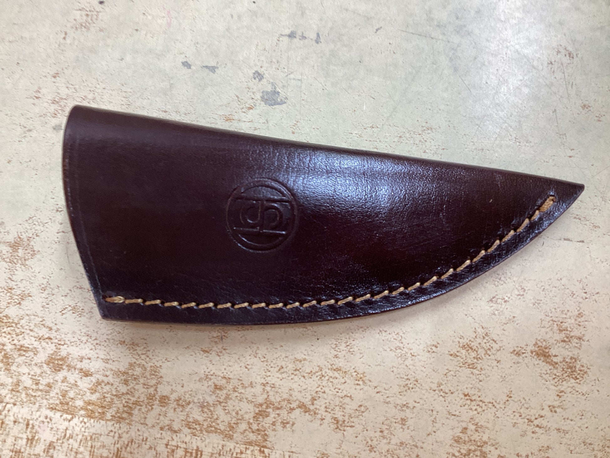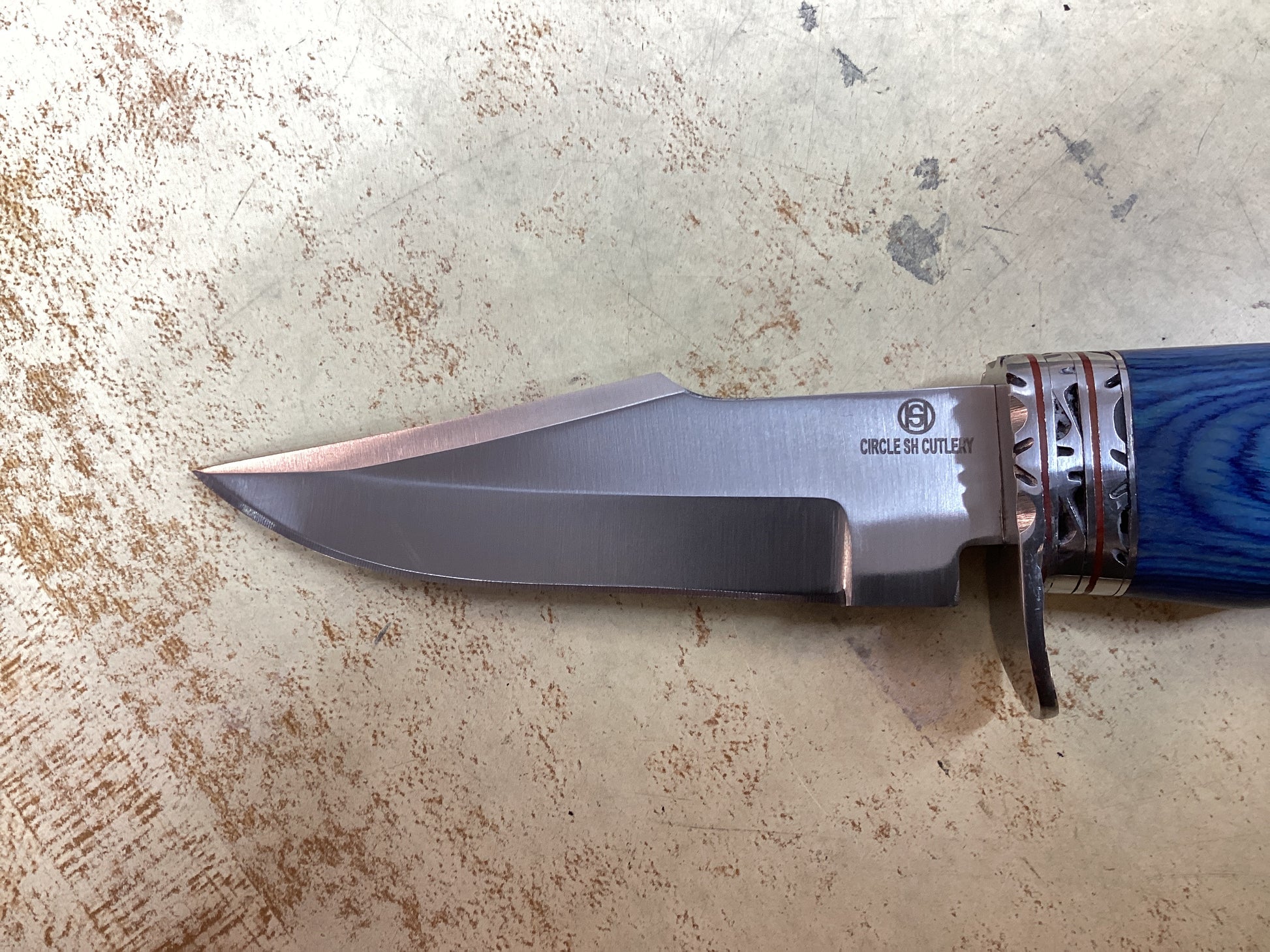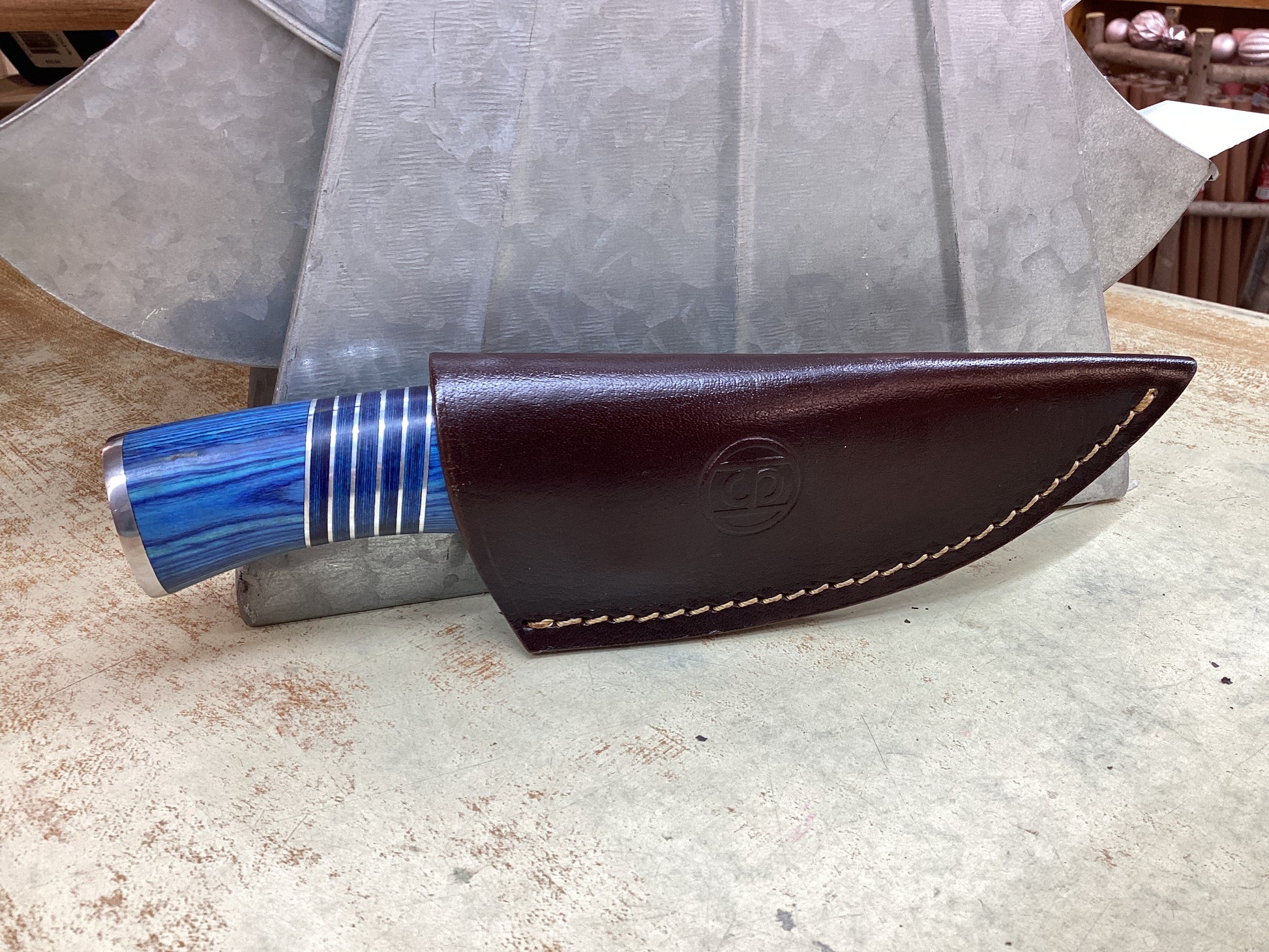 8 1/8” Stainless Blade with Blue Wood Handle and Leather Sheath