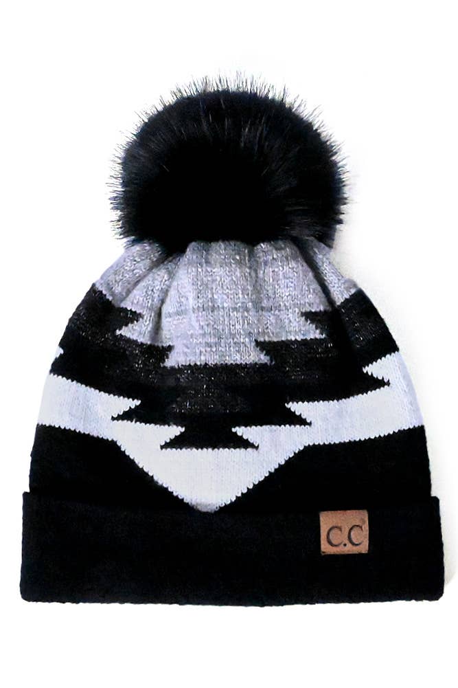 C.C Beanie Aztec Pattern Beanie Winter Hat with Pom