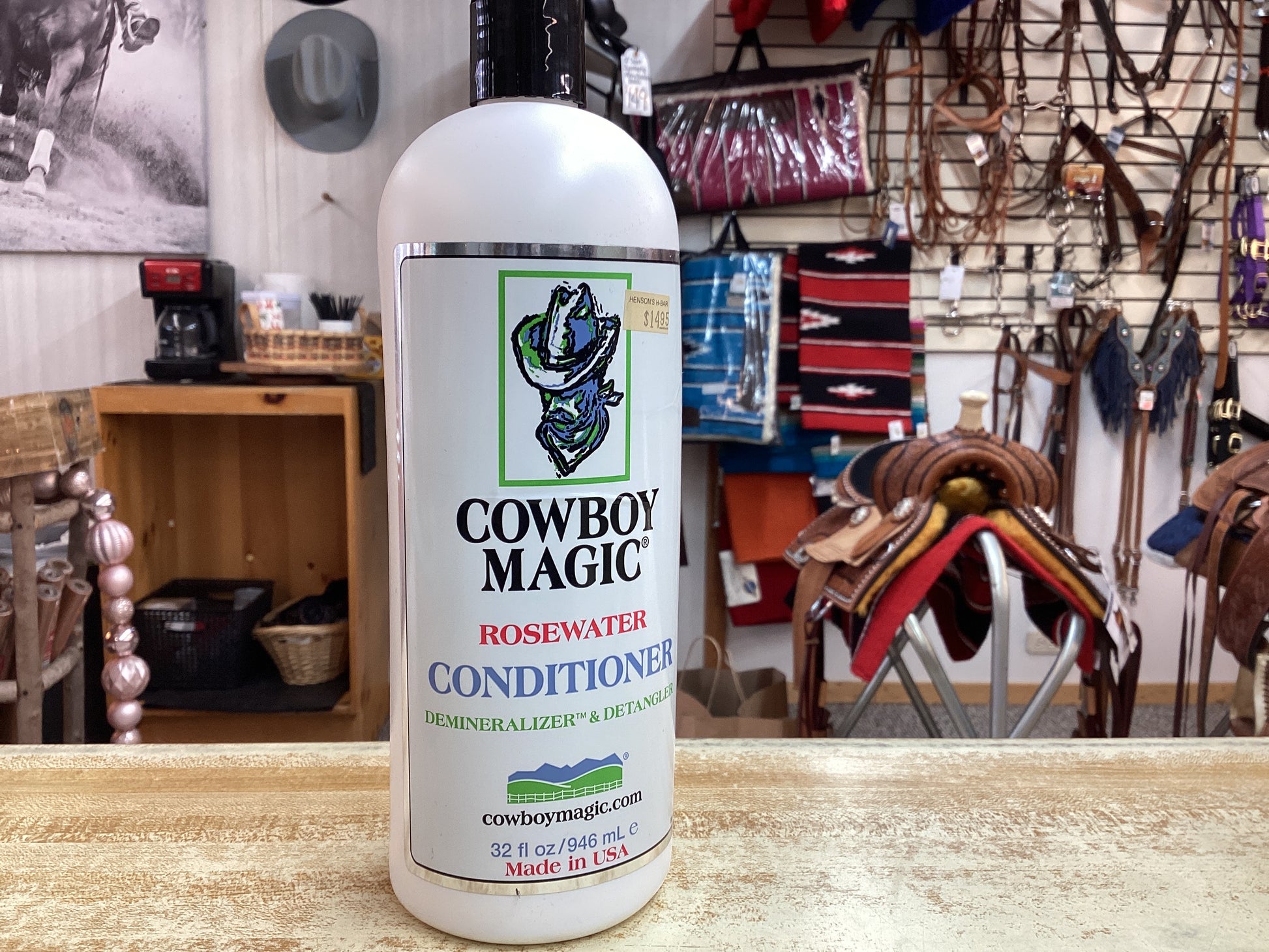 32oz rosewater conditioner, mane and tail detangler by Cowboy Magic. “Leaves hair smooth and silky”.