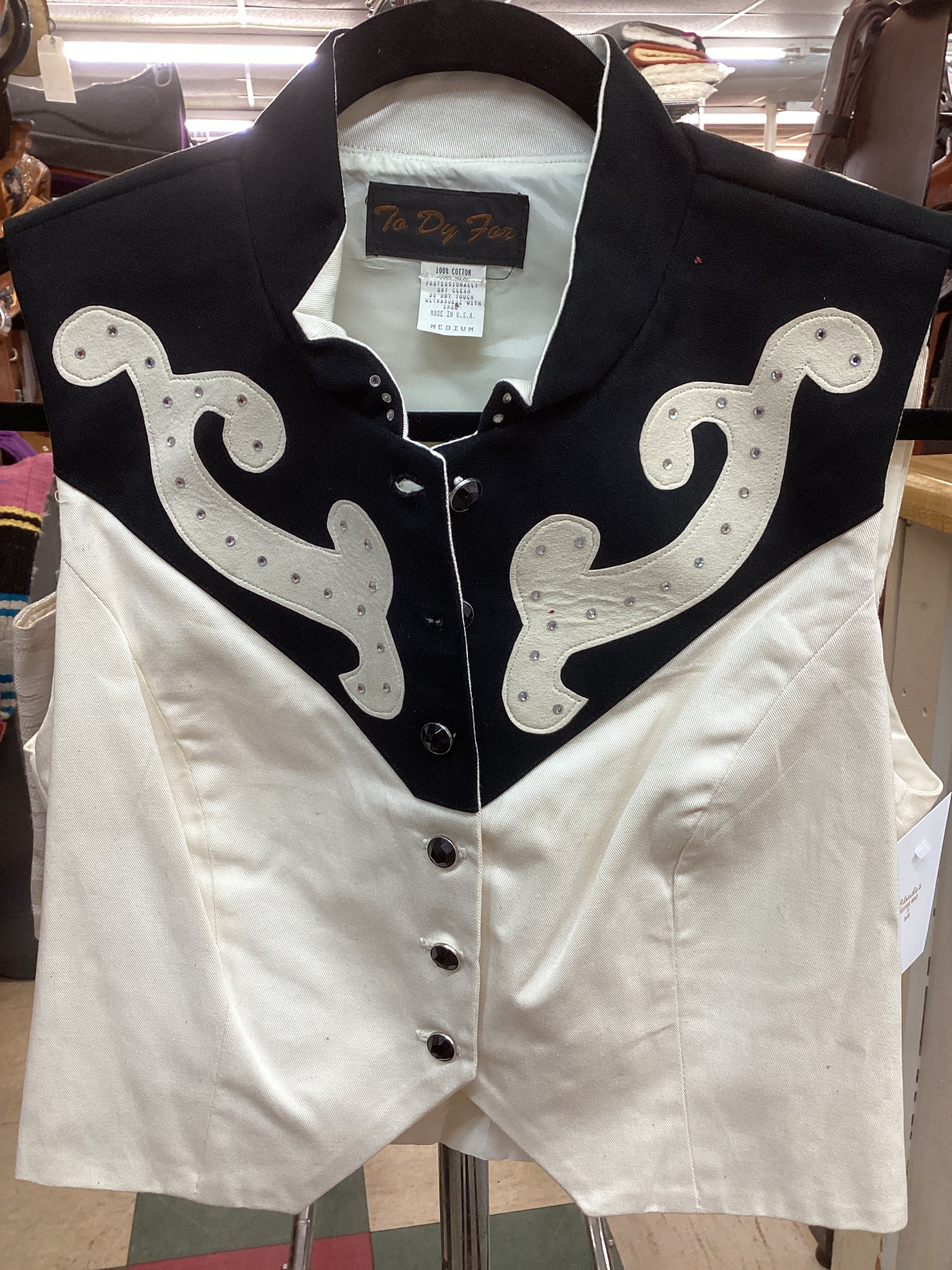 Made of 100% cotton with sueded leather yoke detail and rhinestone embellishments, The Dancing Queen is ready for a night on the town. Can be worn open or buttoned with a standing collar that looks great with a turleneck or crew neck blouse.