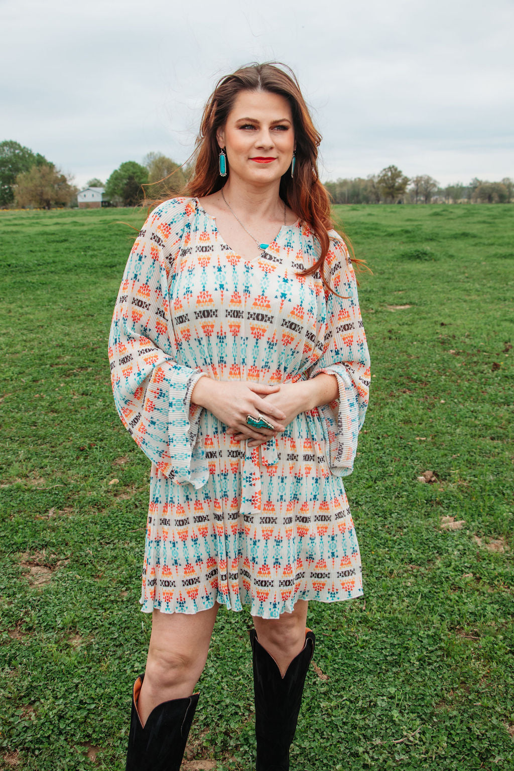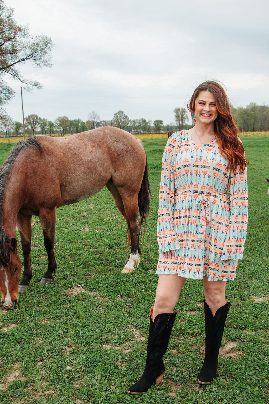 Are you ready to have some fun in our Darlene Dress! This stylish dress features a flawless Aztec print that will make you stand out from the crowd. With long sleeves and a convenient belt, it's not only fashionable but also comfortable. A must-have for any fashion-forward individual! * 100% Polyester. * Sizes S-3XL, true to size. * V-neck. Sizing chart is located in the pictures.