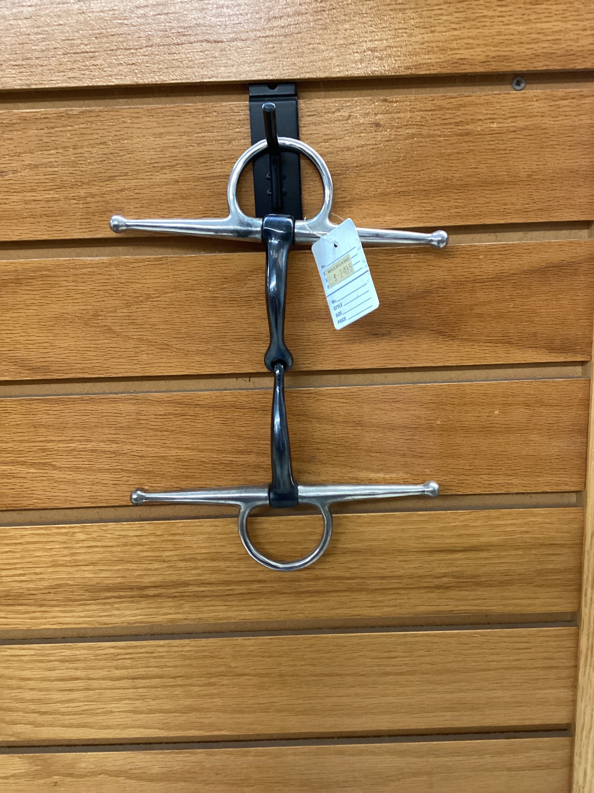 Full cheek, jointed smooth, curved mouthpiece horse bit. Stainless steel.