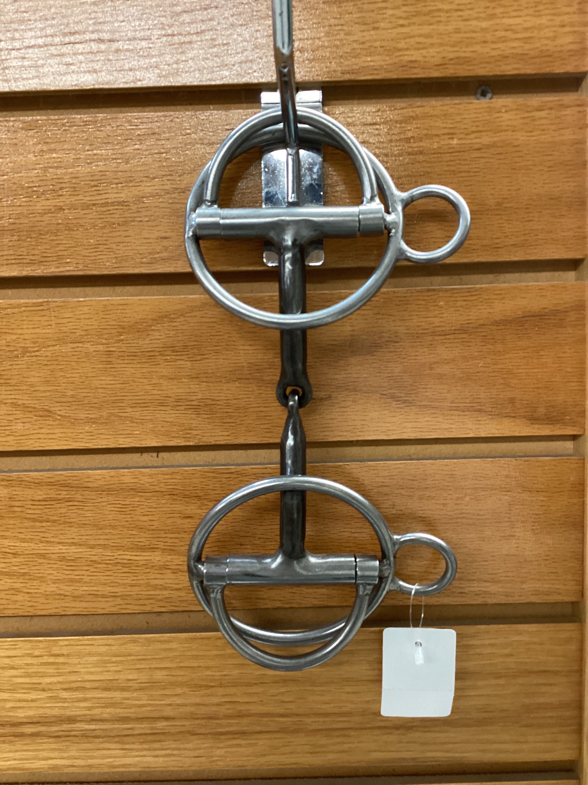 Two piece combination bit with a half moon upper and a ring snaffle lower. Good for transition or training bits.