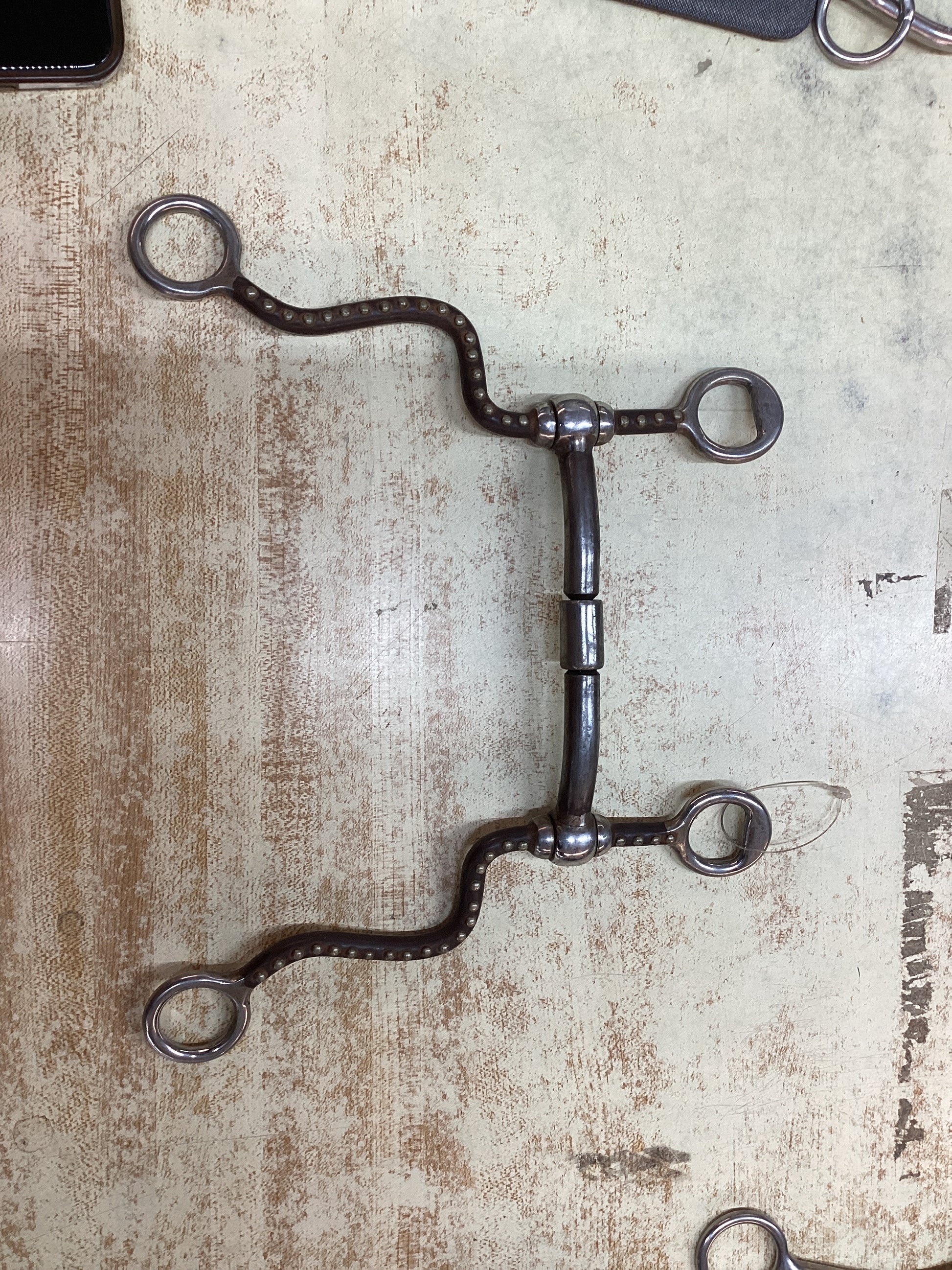 Curb Bit with Roller, 9” Antique Brown & Silver Shanks