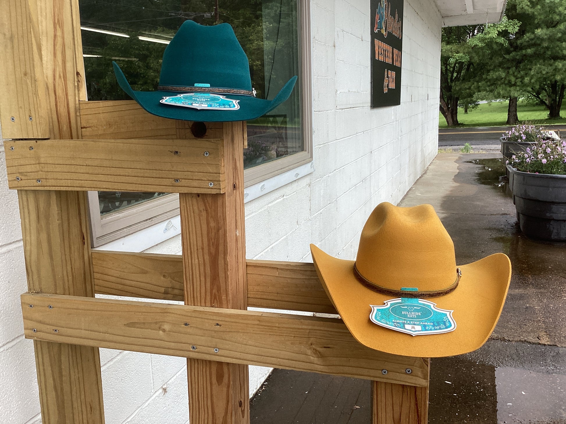 Have fun doing life with this 4X hat by Bullhide Hats. Available in a beautiful mustard and turquoise color with coordinating tooled leather hat band.