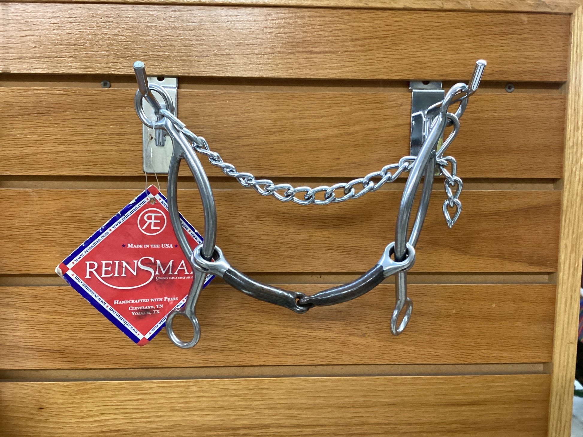6 1/2” cheeks, 5” mouth jointed bit by Reinsman. Very nice gag shank that has good control and very good gag action. Excellent bit whether training or competing. The smooth sweet iron snaffle is the most popular mouthpiece. Good control and very easy to pack. Good for younger horses or older horses with a good mouth.