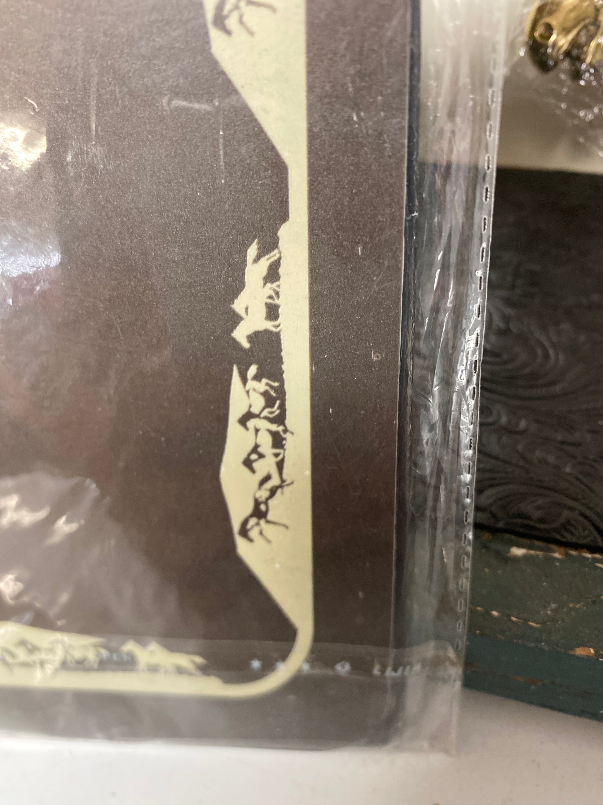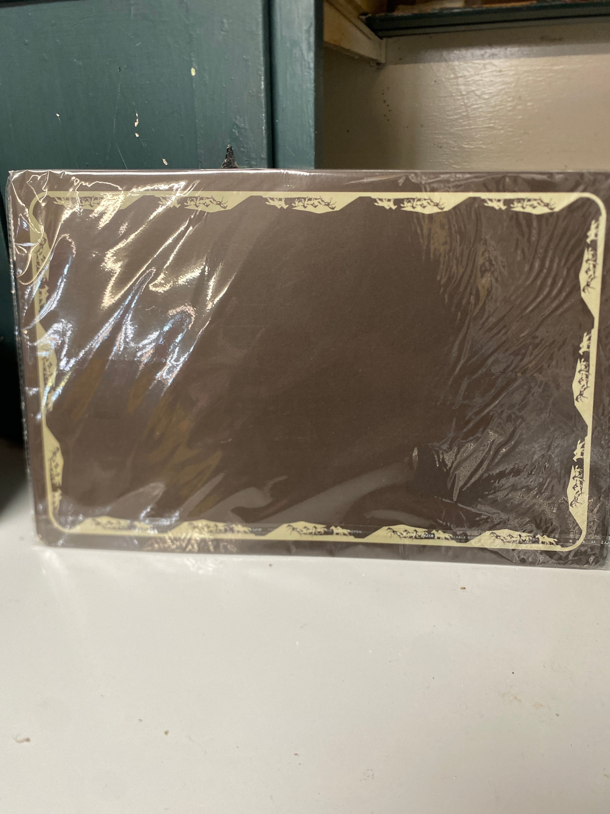 Reversible mats and coaster. Side 1 Beige with Brown design. Side 2 Brown with Beige design.