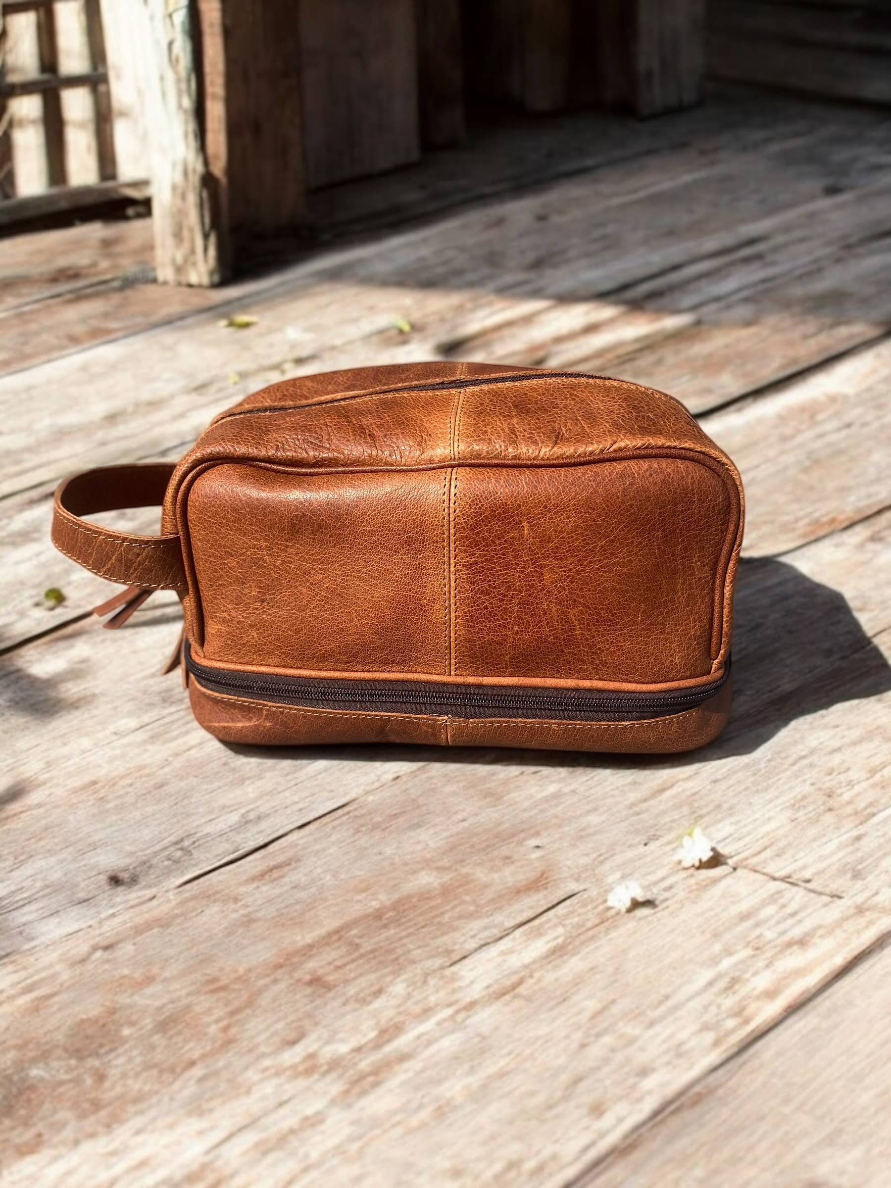 The Tooled Leather Toiletry Bag is a sophisticated and durable accessory designed for the modern traveler. Crafted from high-quality leather, it features intricate tooling that adds a touch of elegance while ensuring longevity. The spacious interior provides ample room for toiletries and grooming essentials, while the sturdy zipper and reinforced stitching guarantee secure storage.