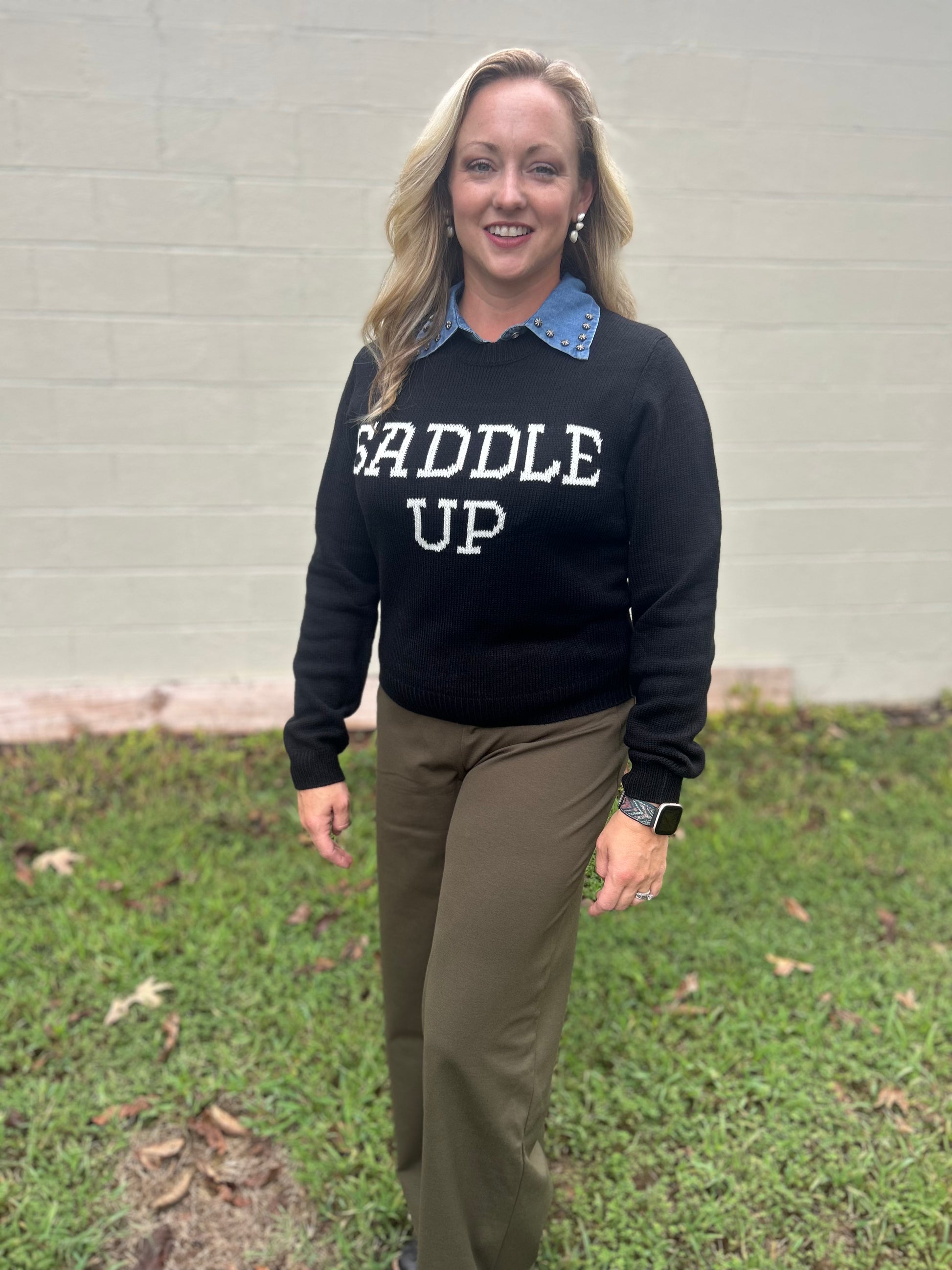 "Saddle Up" Wrangler Retro Punchy Crew Sweater-Black