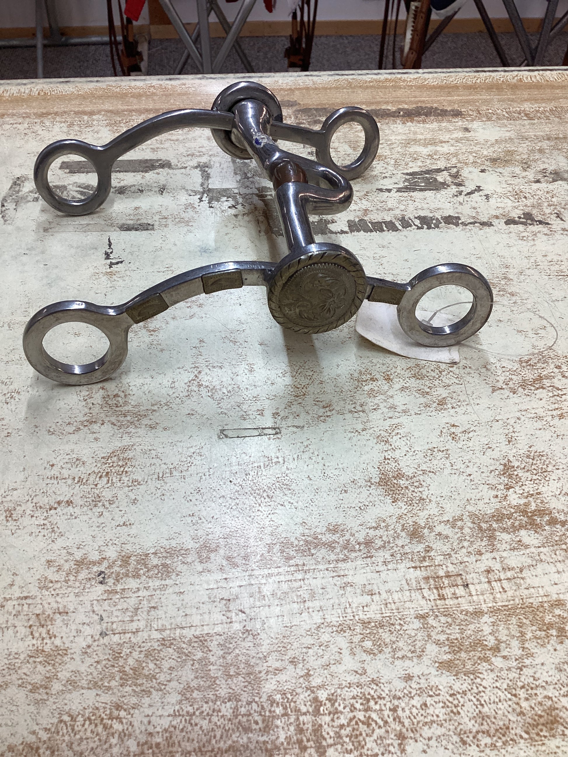 This product is a high ported bit with a linked copper roller underneath the port. The bit has beautiful floral engravings on the shanks. Very nice bit ready for your purchase.