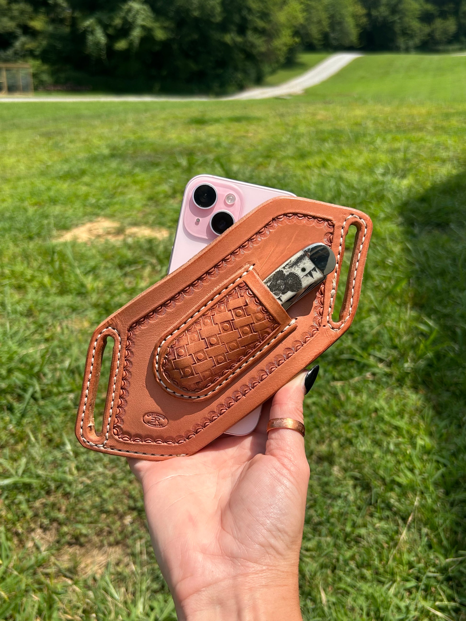 Tooled leather cellphone and knife case