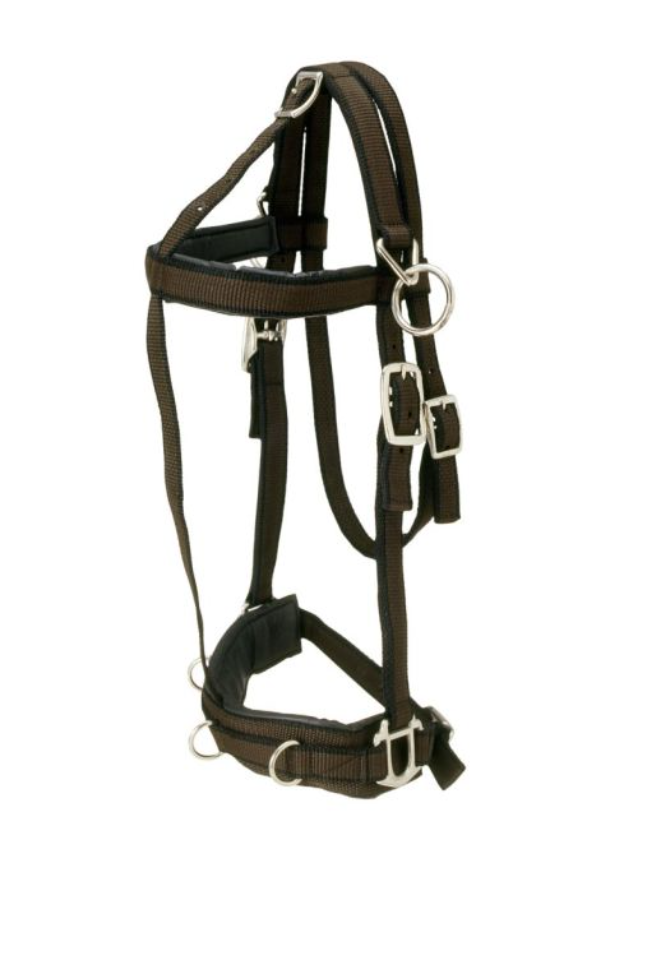 A great training aid engineered for use during groundwork, lunging, and even riding. This cavesson is fully adjustable and features soft comfort padding at nose and browband. Three dee rings on nose piece and two at crown piece allow for multiple training options. Heavy duty nylon web construction will hold up to regular use.