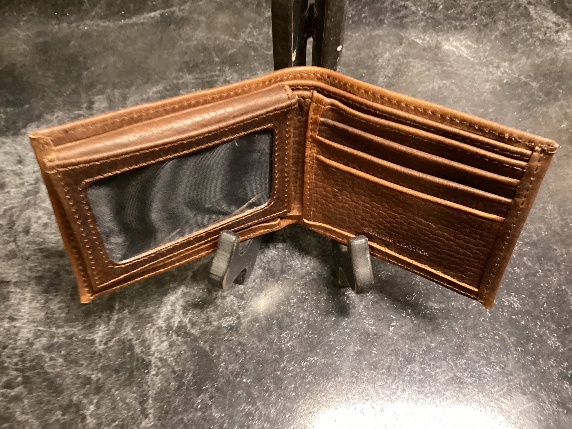 Made of genuine leather, the Brown Pebbled Bifold Wallet is perfect for the guy that wants simple with no fuss or fancy. Features slots for nine cards, ID holder, two large pockets for money, and two smaller slip pockets for holding important items that aren’t often needed.