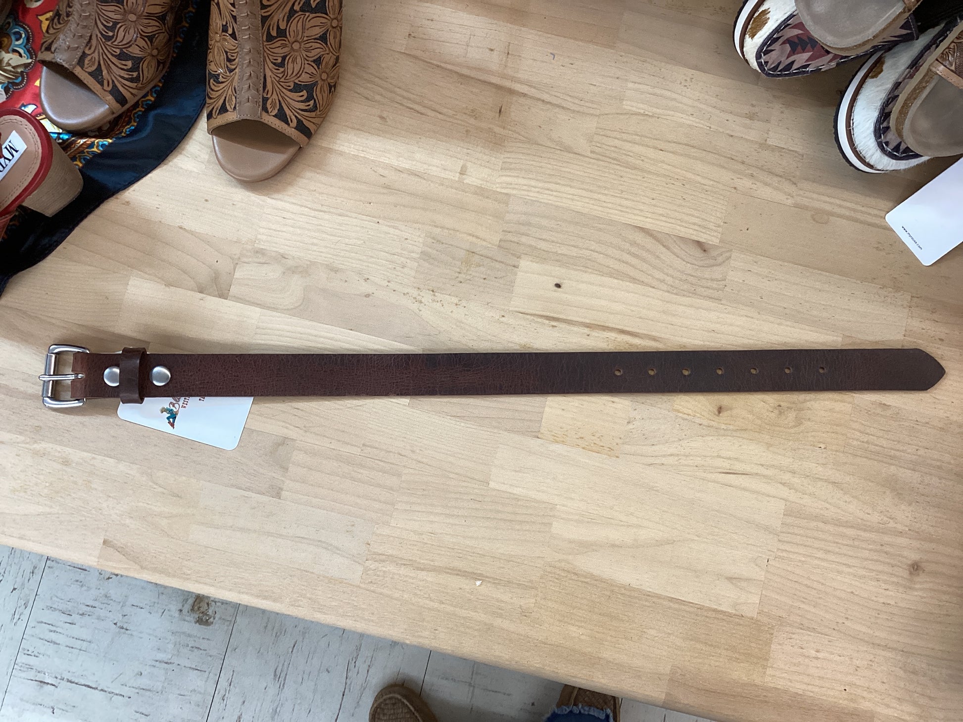 A kids belt to last for generations. Hand-made by local Amish leatherworker, this belt is made to hold up to everyday use and pass on to the next kid in line. Removable buckle.