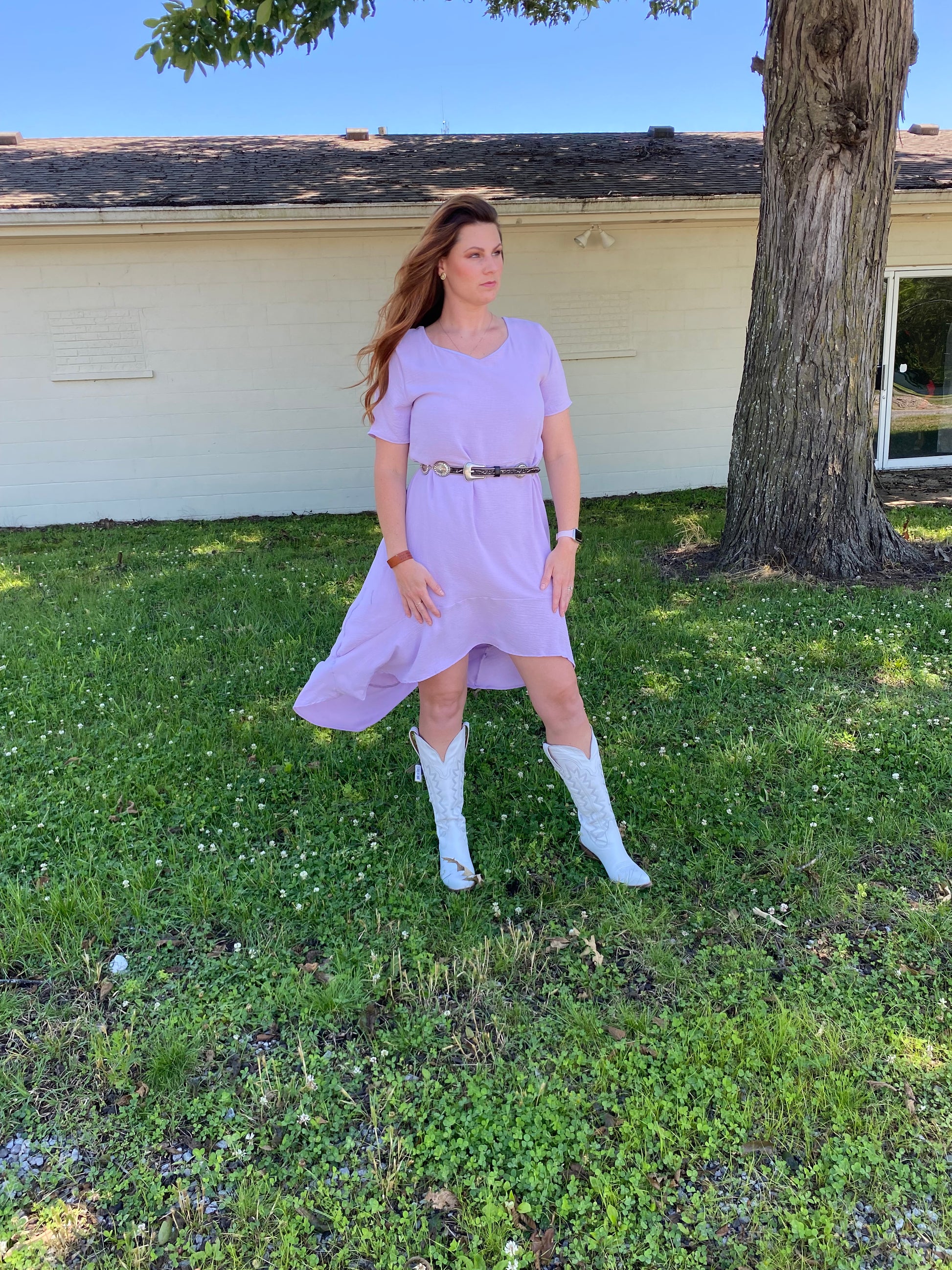 She’s a wild one boys in this beautiful lavender dress from Lucky & Blessed. The linen fabric gives it a whimsical look while the lining keeps it comfortable. With a V-neck, short sleeves, and hi-lo hem line, the Wild One is ready for a night on the town or brunch with the girls.