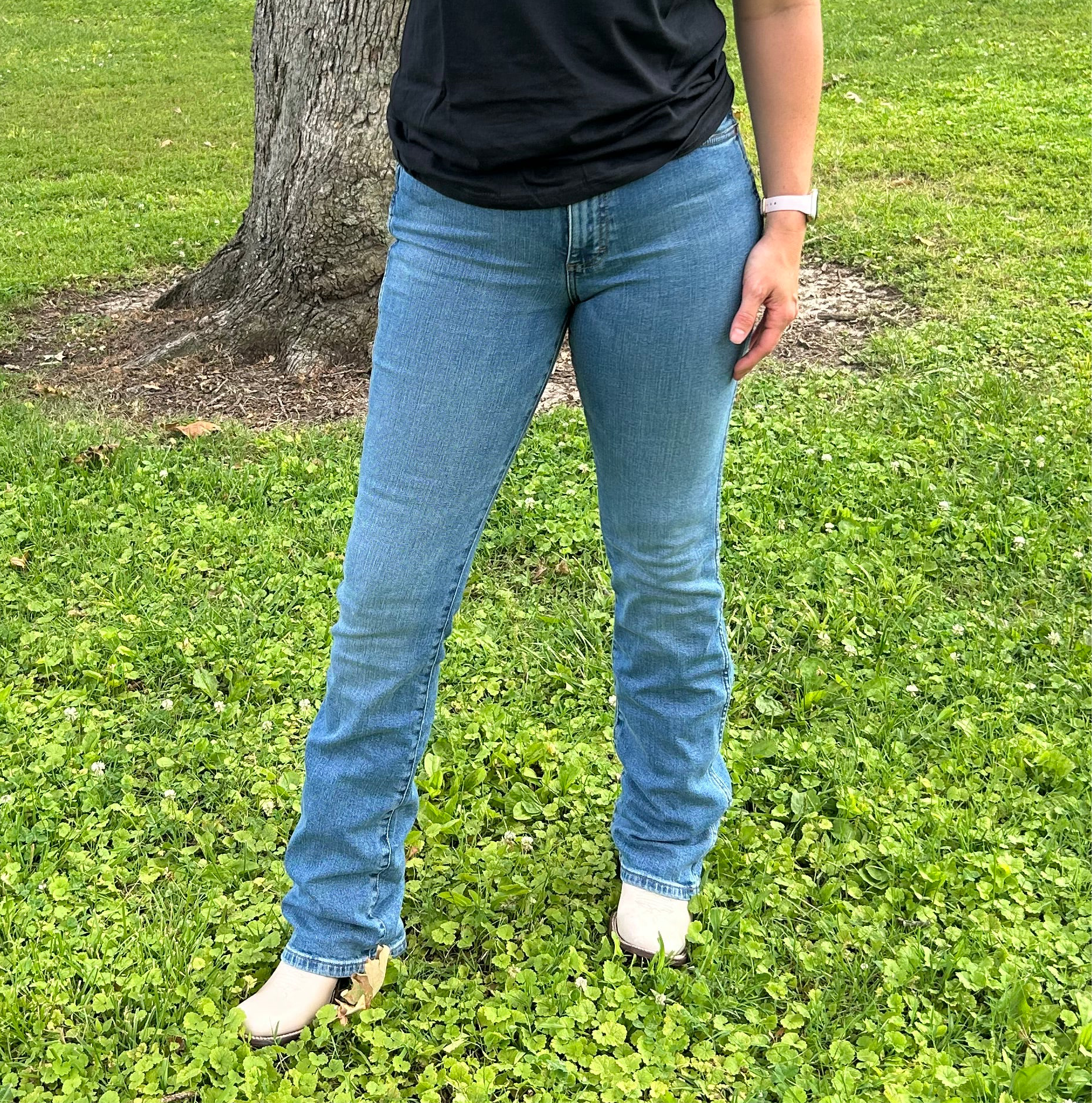 Trends may come and go, but the bootcut is forever. The Women’s Wrangler Retro® Bailey High Rise Bootcut Jean sets the bar high with a waist-nipping silhouette, a close fit through the thigh, and a slightly flared 17” leg opening that goes perfectly over boots. It’s crafted from cotton with just a subtle amount of stretch for comfort. Plus, the signature five-pocket styling, “W” stitching, and rope logo patch deliver the Western authenticity you want