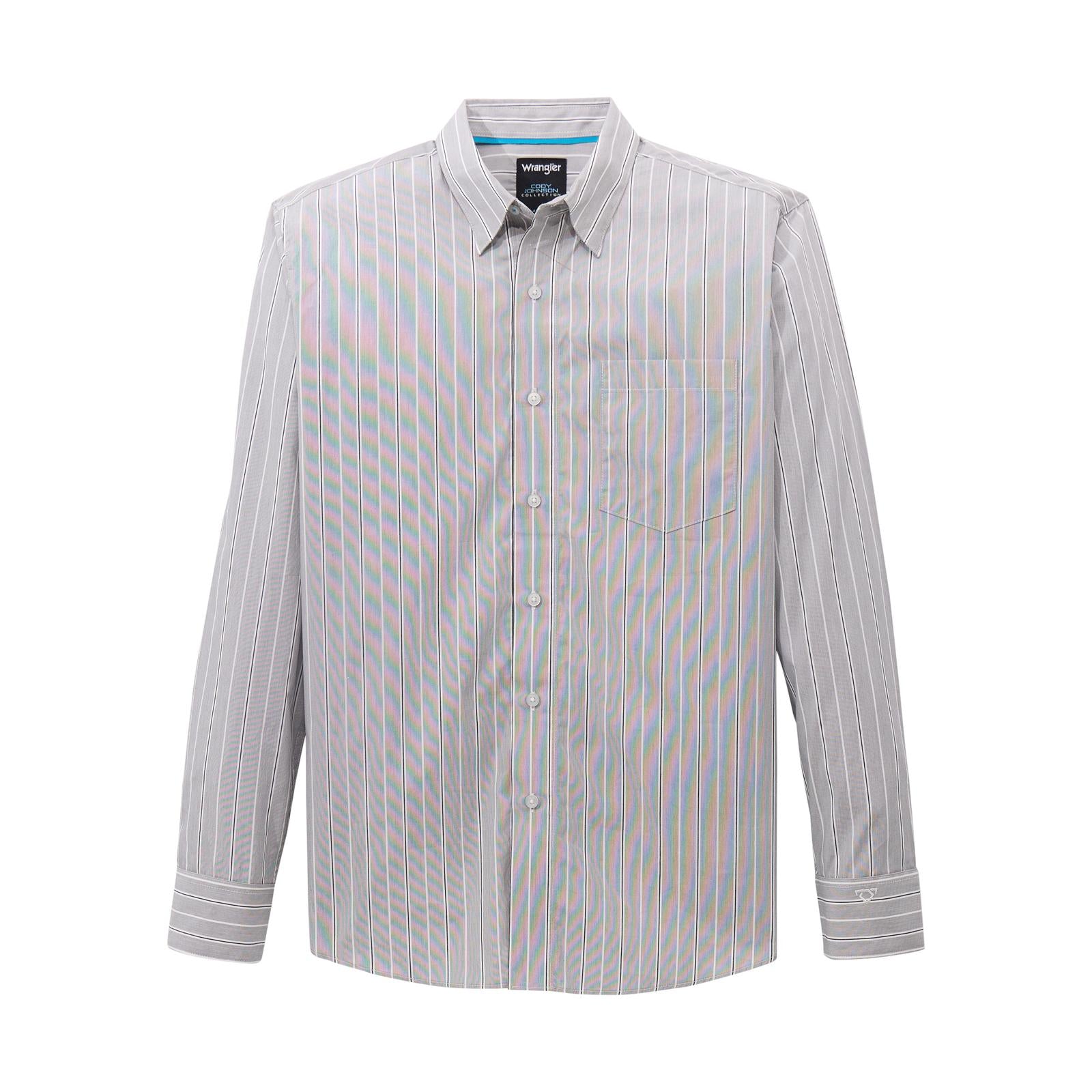 Wrangler X Cody Johnson Long Sleeve Shirt-Classic Fit- Grey & White